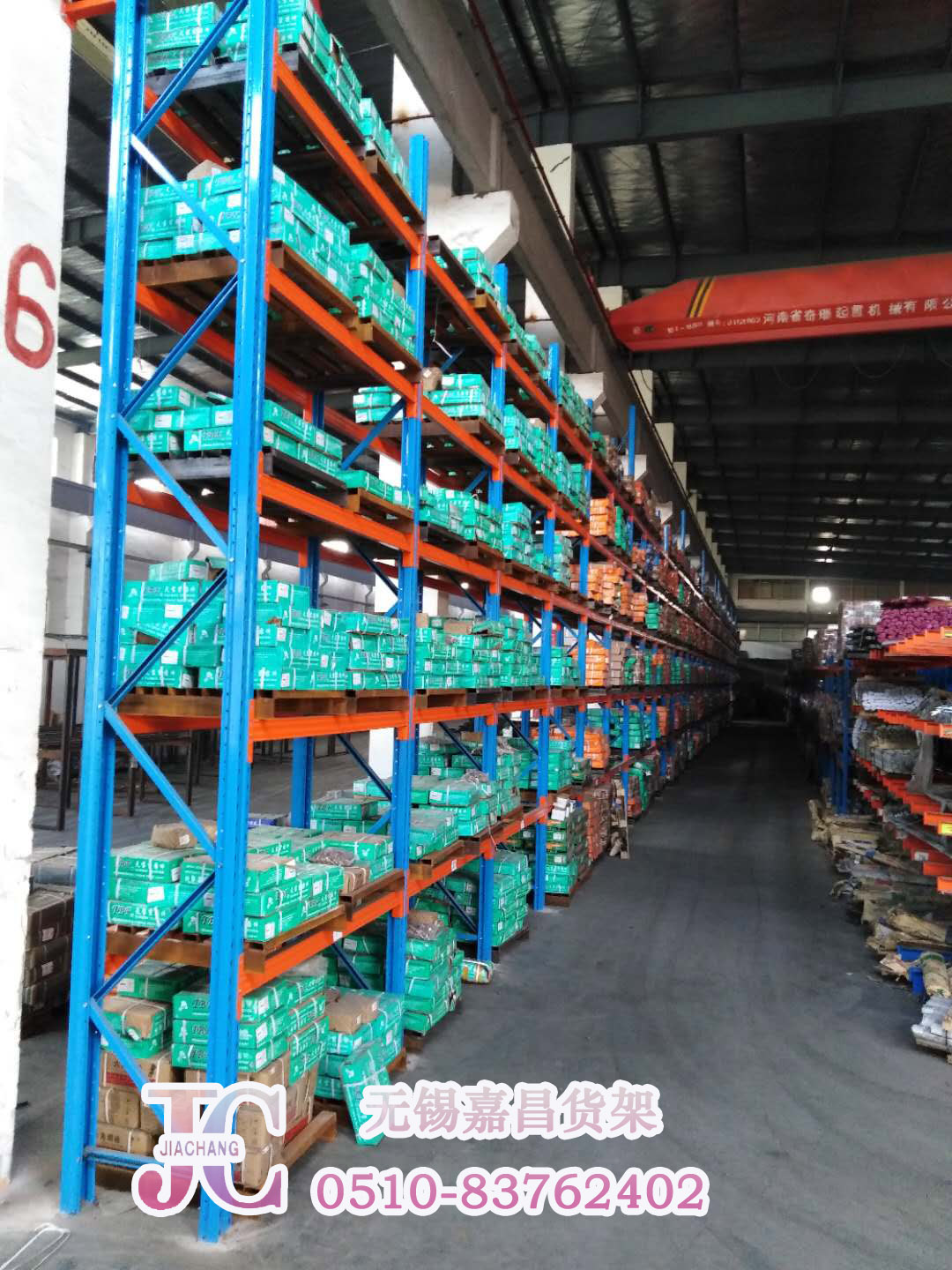 高位托盤式貨架,貨架8米高,每層承載3噸,一層2個托盤,配合電動堆高車,有效利用空間。