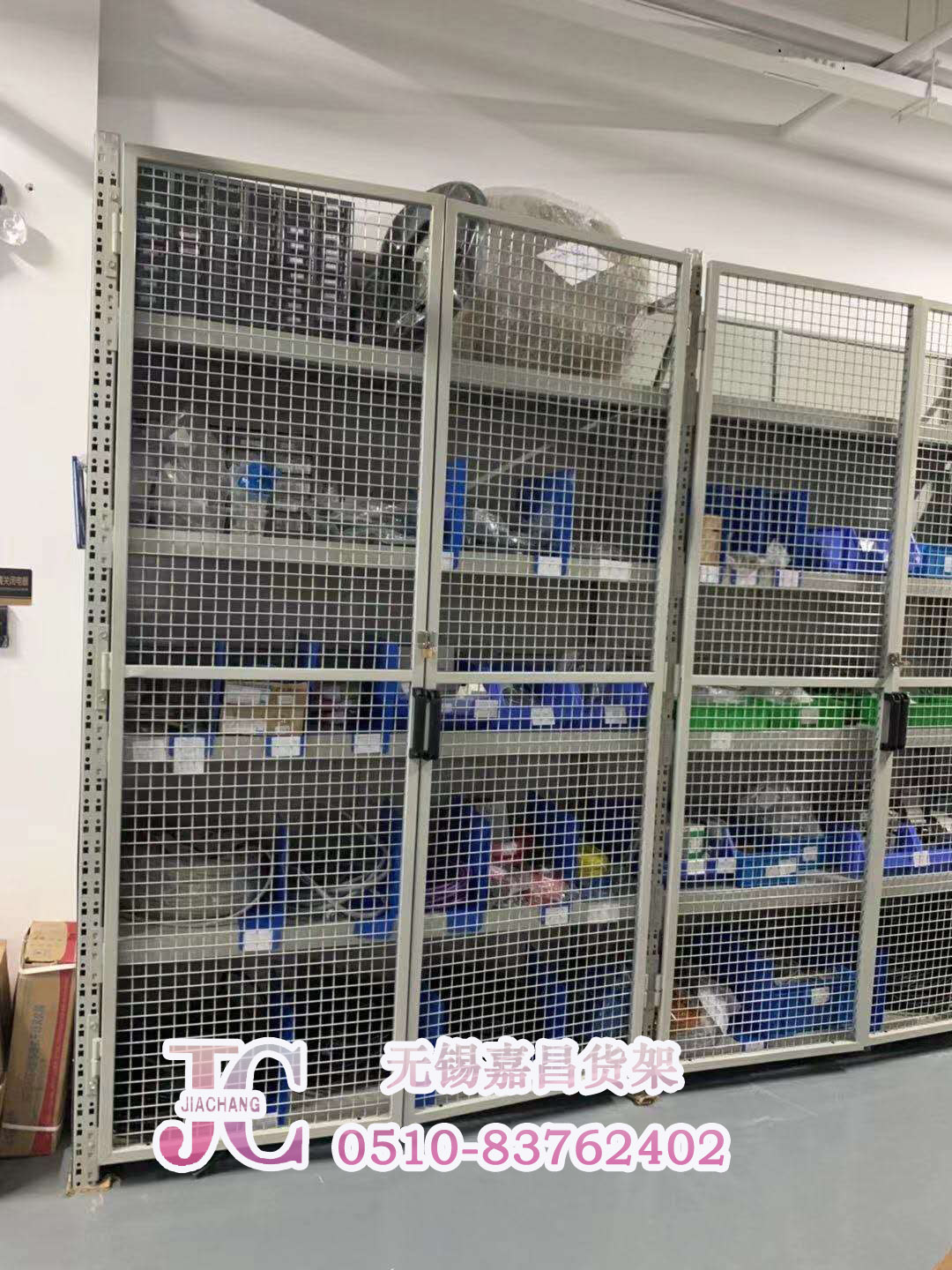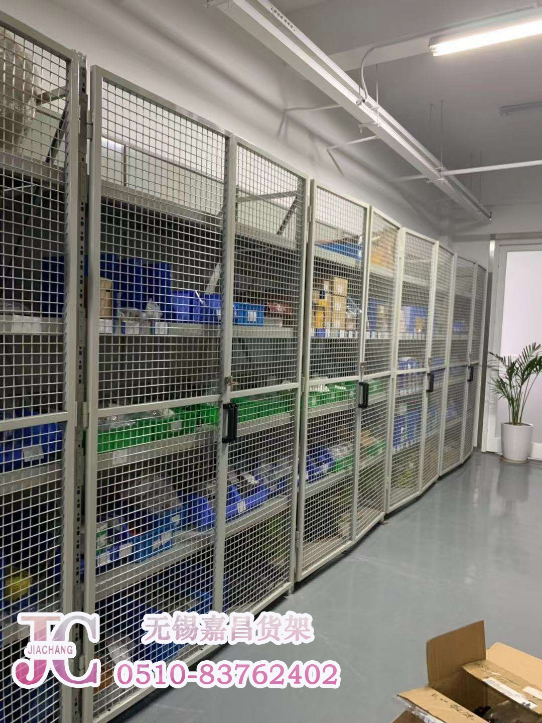 無錫某視覺機器人研發中心,貴重品配件庫,貨架全封閉式,后面及側面有擋板,前面網片門,30*30的網孔,保證手指伸不進去,配合一把鎖,專門人員管理,有效降低貴重品的損失。