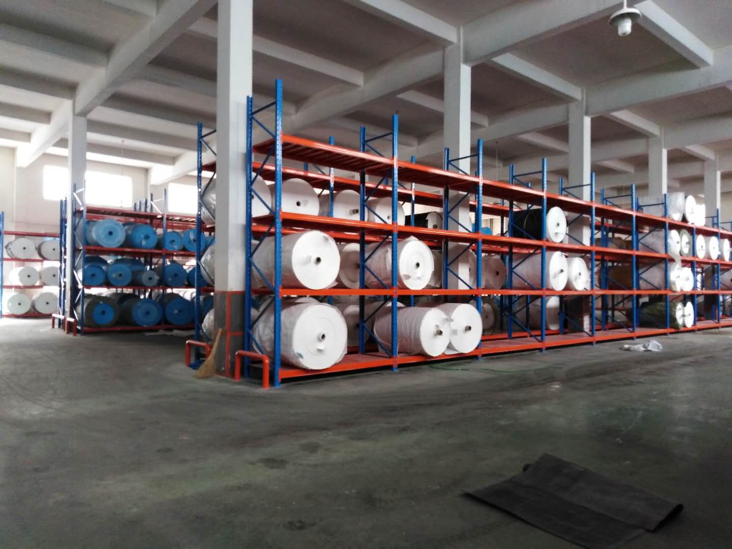 無錫某集裝袋公司,原料庫使用現(xiàn)場(chǎng),布卷全部上架存放。