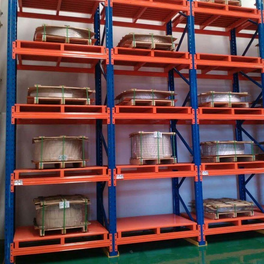 1、托盤式貨架跨度大,承載高。托盤式貨架的跨度(長(zhǎng)度)主要由托盤大小決定,一般一層貨架可放置常規(guī)托 盤兩個(gè)。如果單托盤承載特別大(3噸以上),則每層只能放置單托盤。